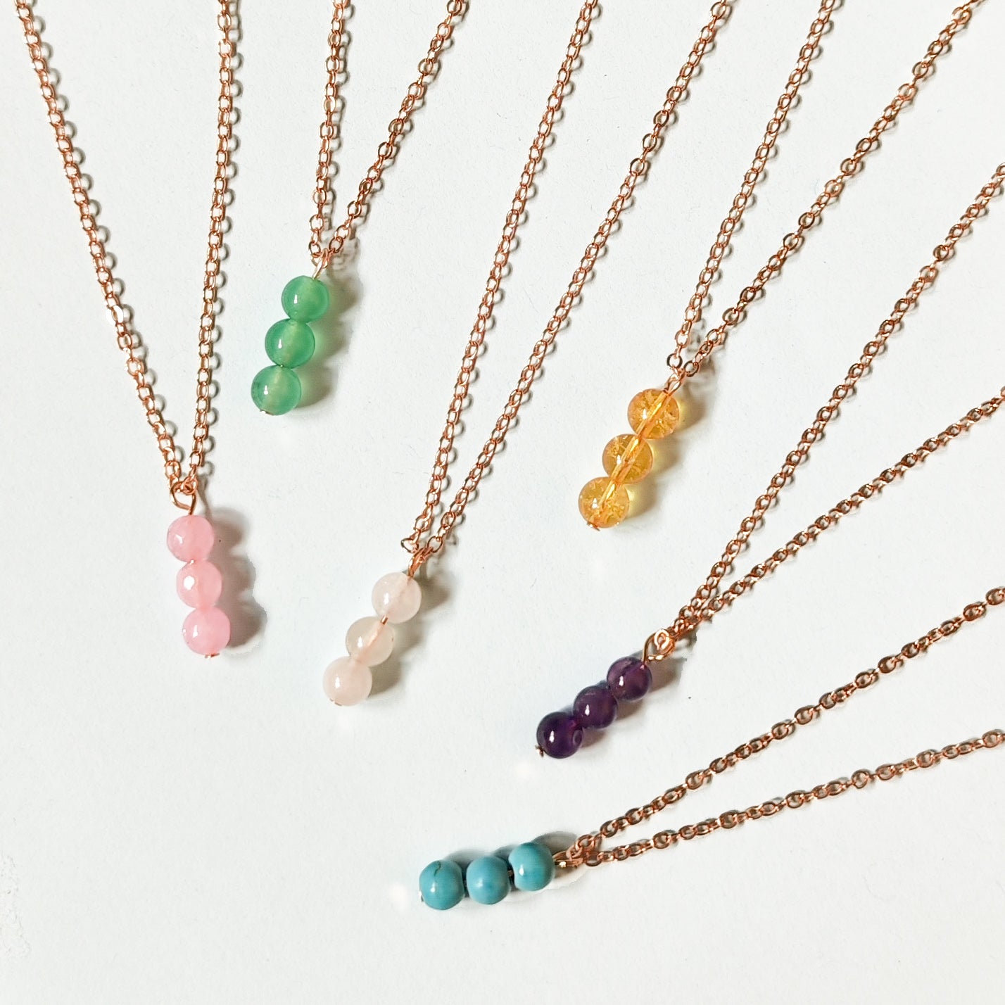 Piezas únicas, elaboradas con piedras semipreciosas como el cuarzo rosa, amatista y turquenita.